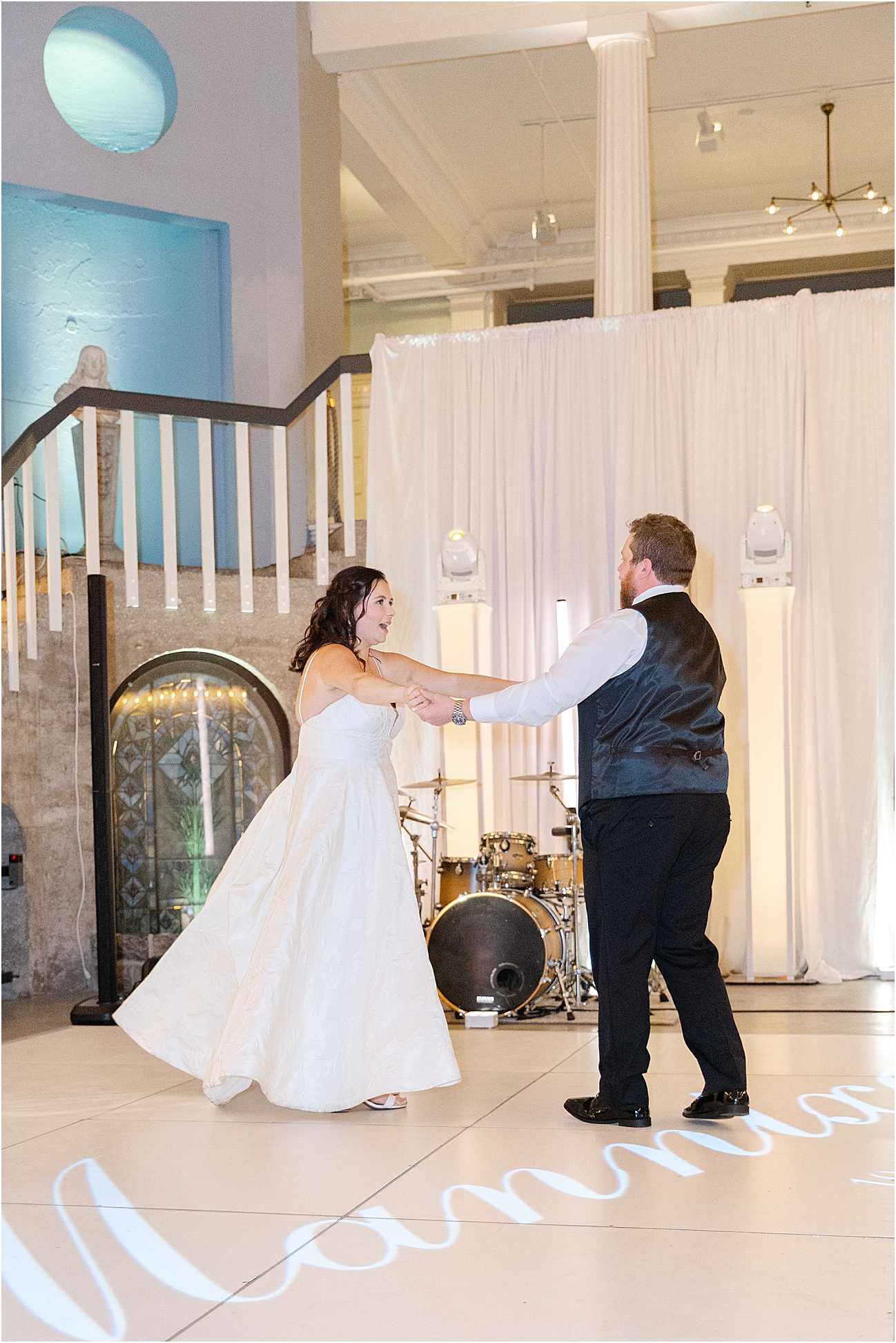 The Lightner Museum provided a breathtaking backdrop for this celebration. With its grand architecture and soft natural light, it felt both stately and inviting — perfect for a luxury Florida wedding. The pastel palette of buttery yellows, soft blues, and pale pinks wove beautifully through the space, echoing the couple’s warmth and style.